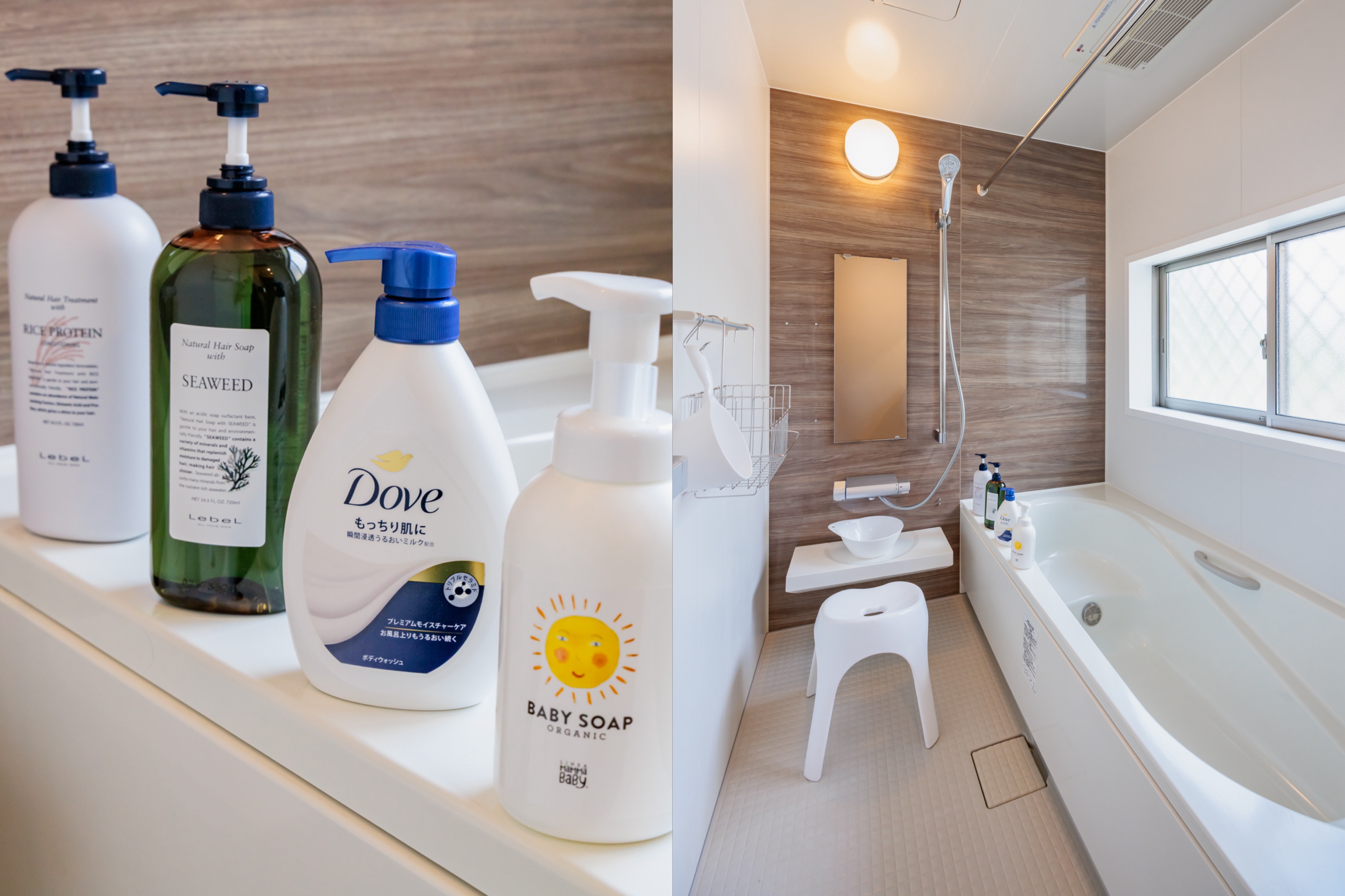 [設備]DHCアメニティ(クレンジング、洗顔、化粧水、乳液),シャンプー/トリートメント,ボディソープ,ベビーソープ,歯磨き粉つき歯ブラシ,ヘアブラシ,ボディスポンジ,カミソリ,ハンドソープ,ティッシュ,トイレットペーパー,洗濯機&乾燥機,洗剤,タオル類,ドライヤー2台,ヘアアイロン