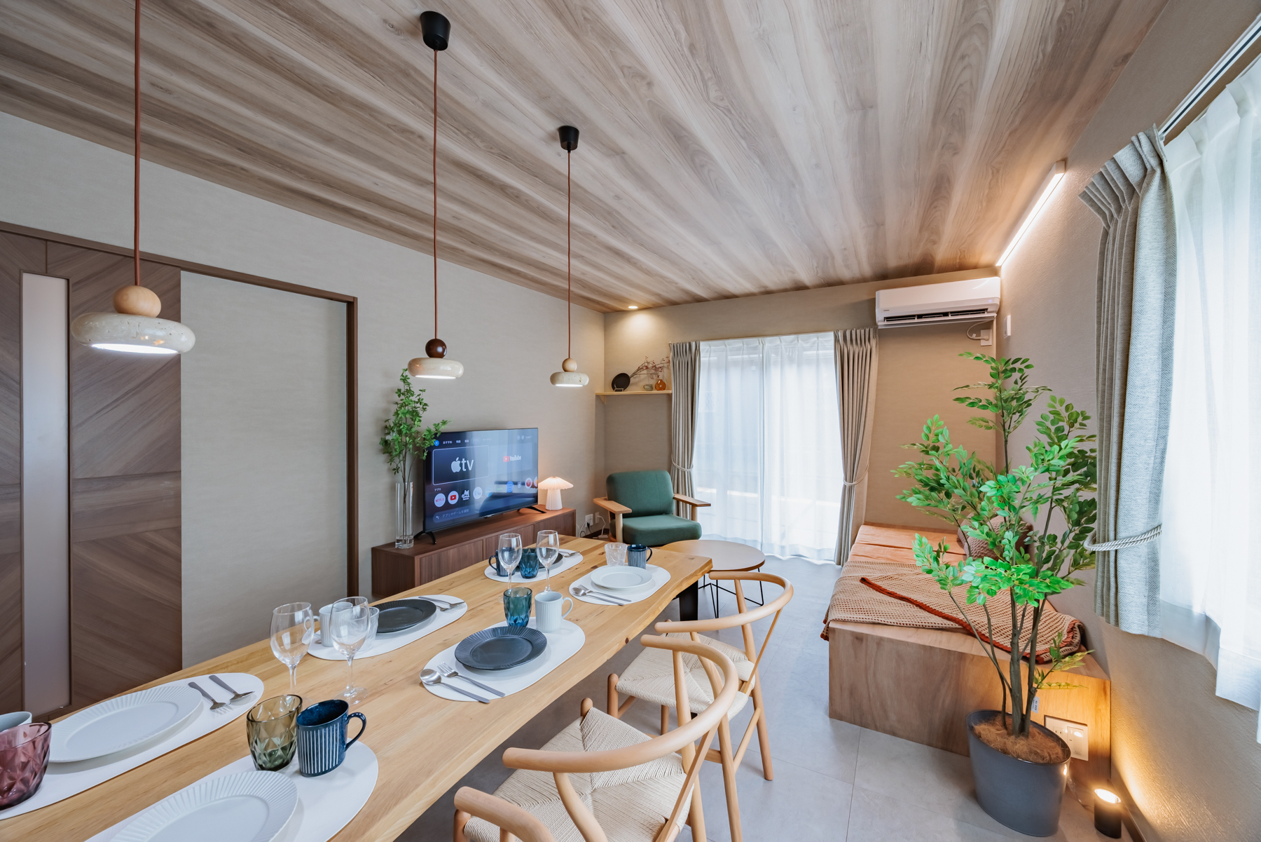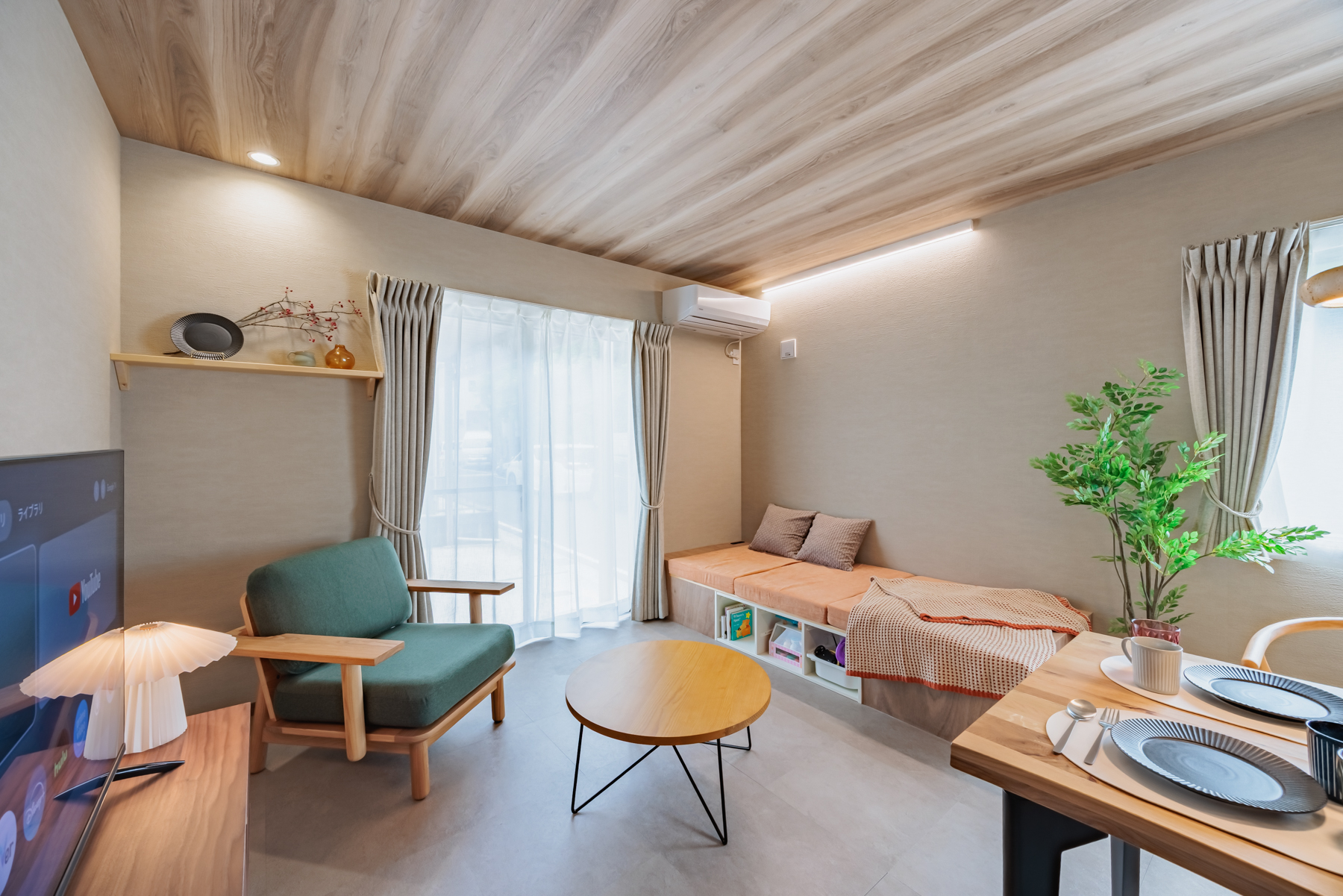 ゆったりとしたソファーベッドは夜にはベッドとしても利用でき、映画を見たりおしゃべりしたり、穏やかな時間を過ごせます。