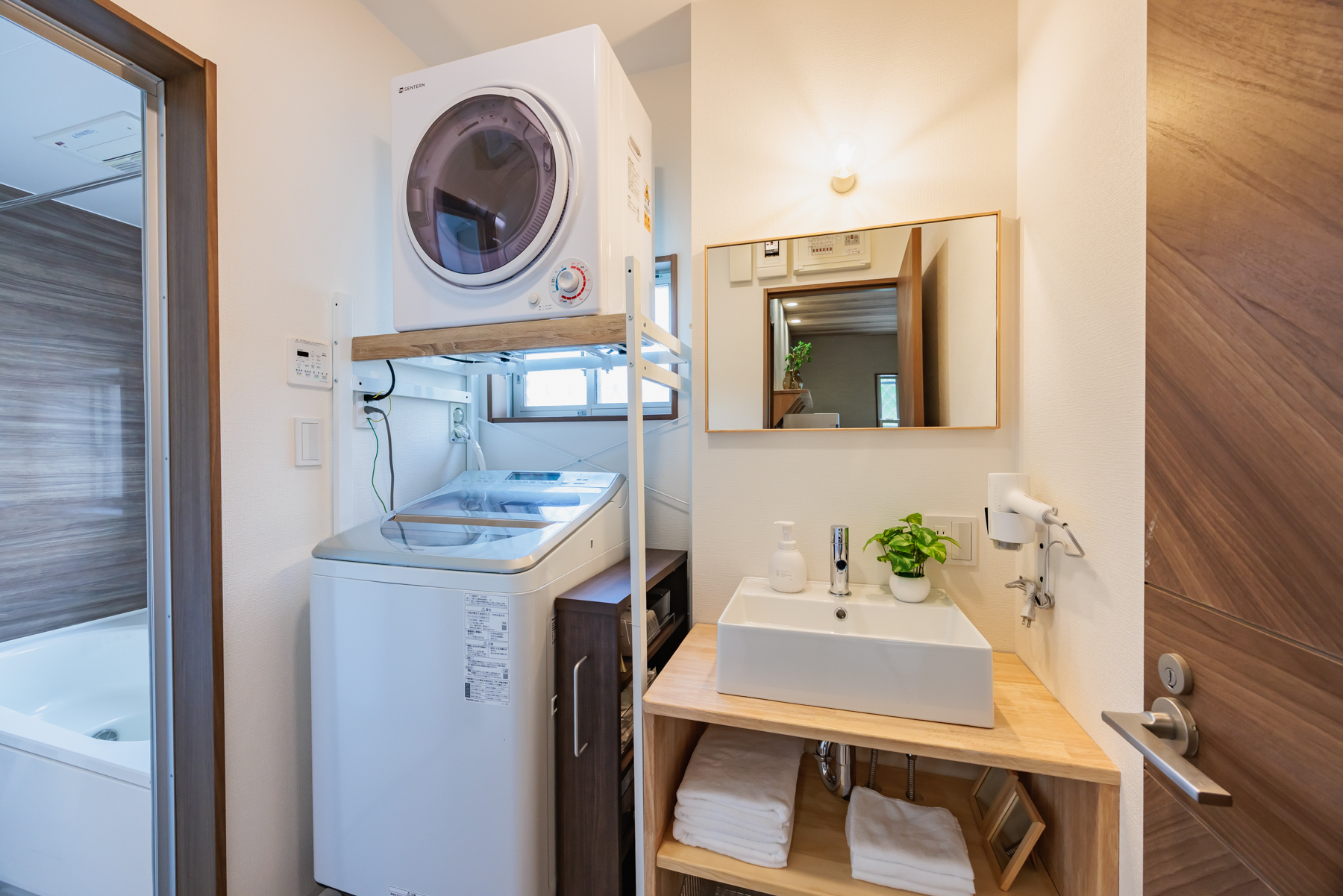 洗濯・乾燥機も完備しているので、長期滞在やお子さま連れにも便利です。