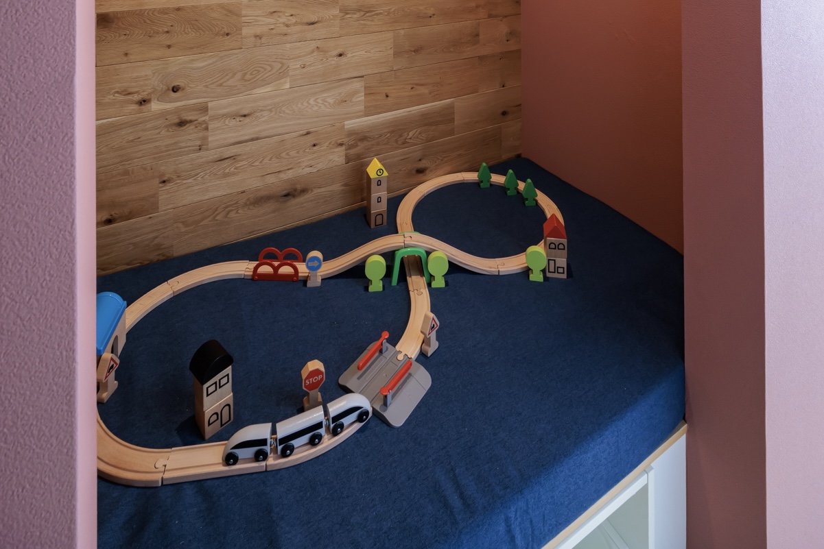 広々二段ベッドを備えたお部屋は、お子さま連れに人気。ヌック(小さなキッズスペース)にはおもちゃや絵本もあり、子どもたちの笑顔が広がります。